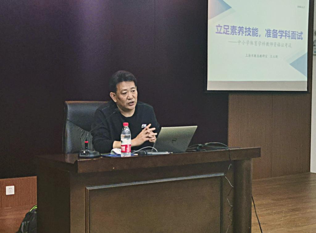 本次讲座邀请了上海市体育与健康学科教研员、中学高级教师王立新老师担任主讲人,王老师以“立足素养技能,准备学科面试”为主题从职业认知、心理素质、仪表仪态、言语表达、思维品质到教学设计、教学实施、教学评价等方面详细解读了成为合格的人民教师所需要具备的基本素养和基本教学技能。