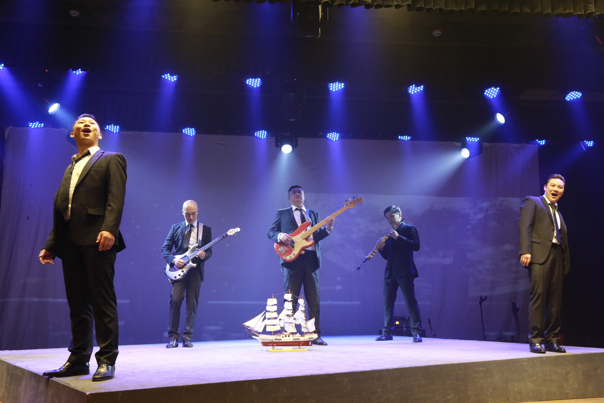 本网讯 11月6日晚,我校秋冬季“高雅艺术进校园”活动的主打节目,由上海话剧艺术中心倾情呈现的《水手之谜》音乐剧在学生活动中心一楼小剧场隆重举行。这是一场集视觉、听觉、触觉为一体的饕餮盛宴,更是一堂人生哲思课。浪漫神秘的不朽篇章;演员磁性的天籁合声;合情应景的舞台吐雾效果,都带给了观众美的体验,突破了观众对音乐剧的想象。