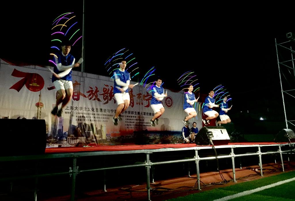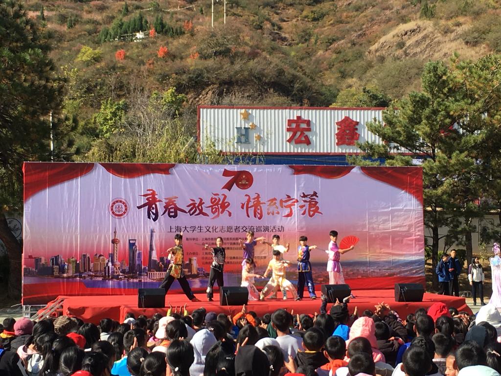 本网讯 11月5日-9日,,在上海市教育卫生党委系统精神文明建设委员会、中共云南省丽江市宁蒗彝族自治县委员会、云南省丽江市宁蒗彝族自治县人民政府指导下,“青春放歌 情系 宁蒗——上海大学生文化志愿者文化交流巡演”在云南宁蒗举办。我校带来了武术表演《武境》和花样跳绳表演《绳彩飞扬》两个节目。同学们克服了天气寒冷、水土不服等困难,走进宁蒗县第一中学、宁蒗县民族中学、贝尔中学、永宁镇中学、小凉山学校,为将近一万名宁蒗师生带来了精彩演出,展示了上海大学生的青春活力,展现了绿瓦学子良好的精神风貌与专业素养。