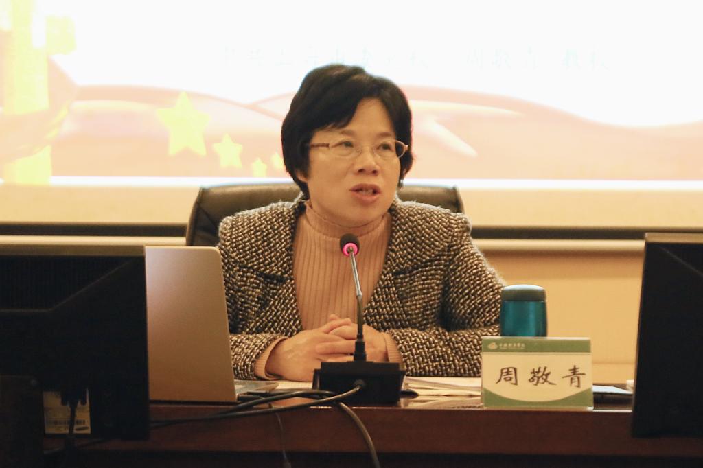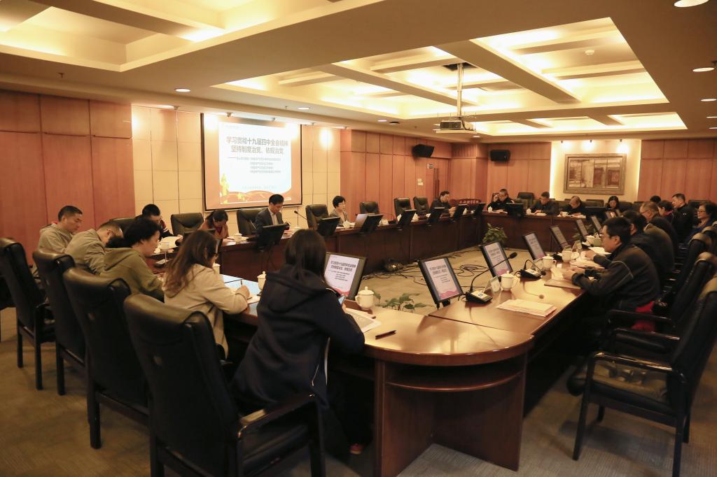 本网讯 11月13日上午,中共上海市委党校科研处处长、研究生导师周敬青作教授受邀在我校图文信息楼第一会议室开展了题为“学习贯彻党的十九届四中全会精神,坚持制度治党、依规治党”的专题辅导报告。作为我校“不忘初心 牢记使命”主题教育政治纪律与政治规矩专题的学习内容,周教授系统地向与会人员阐释了坚持制度治党、依规治党的重要性。辅导报告后,党委中心组举行了学习贯彻党的十九届四中全会精神读书班。学校党委中心组成员、各二级学院党委书记参加了本次学习。