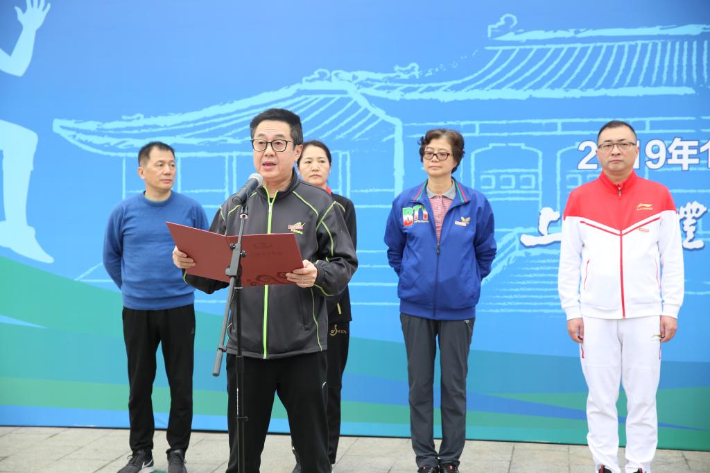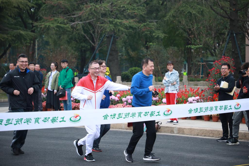 李崟宣布2019年上海体育学院运动会开幕并为教职工健身长跑鸣枪发令,校庆运动会田径比赛也随之正式拉开了序幕。