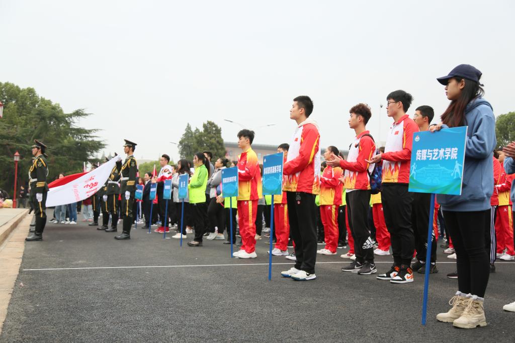 本网讯 11月13日上午8时,我校2019年运动会开幕式在绿瓦大楼前广场举行。我校党委书记李崟,党委副书记、副院长陈晓峰,党委副书记、纪委书记詹萌,党委副书记潘勤、杨玲,副院长施之皓、王兴放、王陈,以及中国乒乓球学院、各二级学院领导和学院各机关部处的领导出席开幕式。