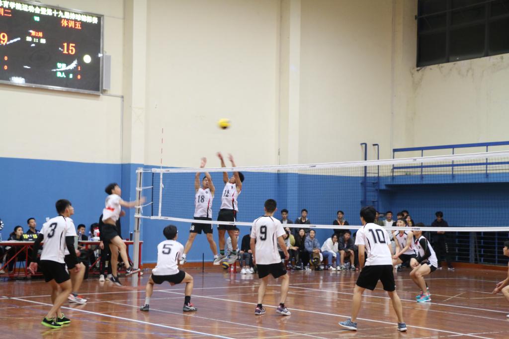 下午17:30,排球决赛在综合馆拉开帷幕,传艺学院获得女子组冠军,体训2队、经管学院分列二、三名;体训5队摘得男子组桂冠,体训2队、运动科学学院分获二、三名。比赛结束后,体育教育训练学院党委书记徐烈、体育教育训练学院党委副书记曹智超、训练竞赛处竞赛主管邵寅强,分别为男子、女子组前三名队伍颁奖。