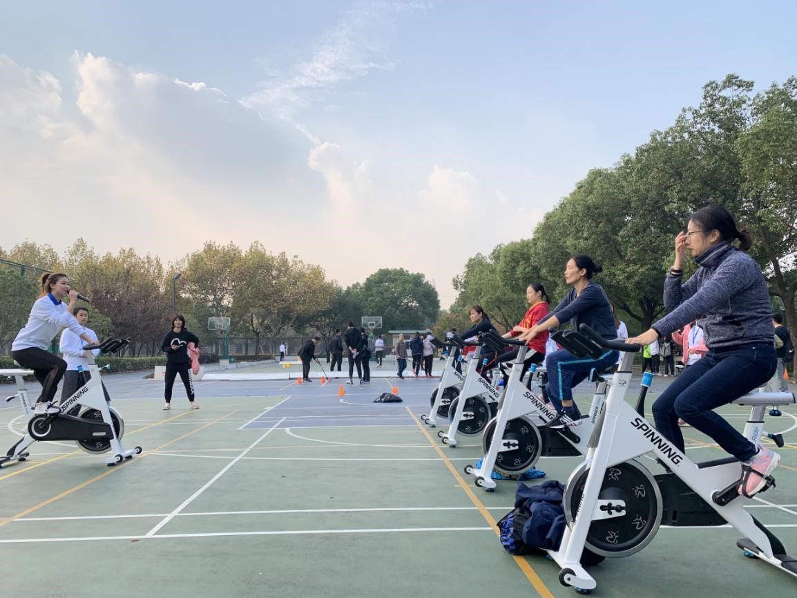 旱地龙舟、不倒火炬等6个健身项目比赛分别在中央足球场、绿瓦大楼前和健身苑陆续举行,教职工和学生踊跃参与,比赛现场充满了热烈欢乐的气氛。通过健身项目比赛,有效提升了学校师生的凝聚力与合作精神,收获了健康与快乐。尽管在上午的比赛中下起了阵雨,但兴致勃勃的教职工们并未受到影响,全天参加各项赛事的教职工人次近600人。参赛教职工都以饱满的热情、昂扬的斗志、不服输的劲头参与到比赛当中,人人奋勇、个个争先,很好地诠释了“勇于竞攀”的上体精神。