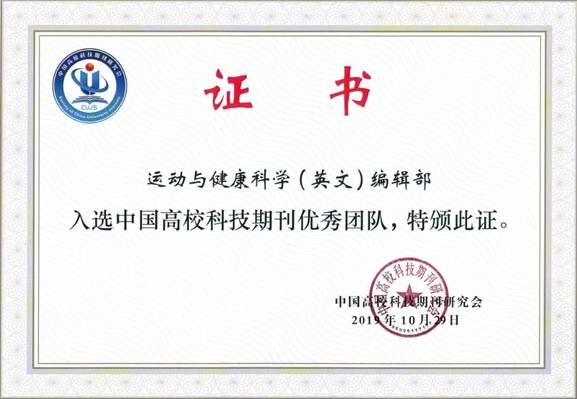 本网讯 2019年11月6日~9日,中国高校科技期刊研究会第23次年会在成都召开,会议聚焦“改革创新发展,服务学科建设”,期间公布了2019年中国高校科技期刊“优秀团队、优秀个人、优秀论著”遴选结果。中国高校科技期刊研究会现有千余个会员单位,每两年开展一次“优秀团队”遴选活动,本次评选经计量指标筛选、专家评审组评估、编校质量审读、复核、公示等一系列严格程序完成,最终遴选出82个“优秀团队”。上海体育学院期刊中心《运动与健康科学(英文)》编辑部继2017年获评“中国高校科技期刊优秀团队”,2019年蝉联这一荣誉称号。