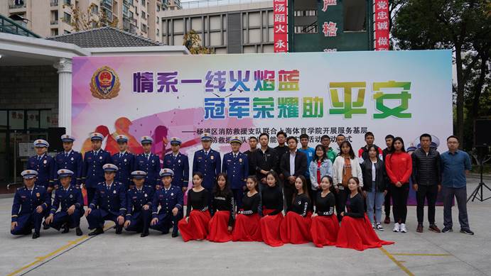 今年以来,体训学院在与杨浦消防的前期合作中,申报的《情系一线“火焰蓝”冠军荣耀助平安》项目被共青团上海市委、上海市教委、上海市民政局、上海市学联评为上海市高校共青团往社区走30佳孵化项目;在新中国成立70周年前夕,与杨浦消防合作的快闪视频被上海消防官媒、STV新闻坊报道。