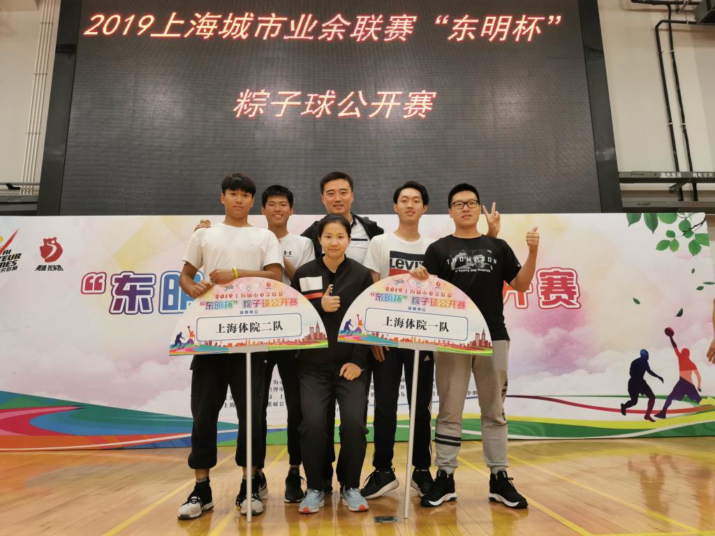 本网讯 11月16日,上海城市业余联赛“东明杯”粽子球公开赛在黄浦体育馆隆重举行。本次公开赛吸引了来自全市11个区53支代表队300多名选手参加,我校在金贇老师的带领下分别组成体院一队、二队共6名参赛队员。经过两个多小时的激励竞争,分别在男子个人和三人团体拍球两项上取得优异成绩。来自体教专业的毛天伟、蒋威峰、李怡俊同学组成的体院一队在团体比赛中以183分的成绩,打破了该项目131分的原始记录,并勇获“团体突破奖”,同时毛天伟同学还已83分的成绩获得男子个人项目第一名。体院二队来自传艺和体教专业的潘浩宇、刘侠、刘豫申同学也以79分的成绩取得团体第二名,6名同学均获得上海市粽子球一级运动员称号,两支代表队的出色表现展现了绿瓦队员在该项目上的绝对实力。