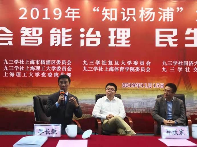 本网讯 11月15日,“社会智能治理 民生助推创新——2019年“知识杨浦”九三论坛在上海理工大学举行。我校组织部副部长丁志刚、九三主委朱东、副主委陶倩、委员王雪强以及8名社员参加本次论坛。九三学社上海市委副主委吴健生,上海理工大学党委副书记孙跃东,中共杨浦区委常委、区委统战部部长董鑫旺,上海理工大学副校长张华,杨浦区政协副主席李长毅等领导出席论坛。