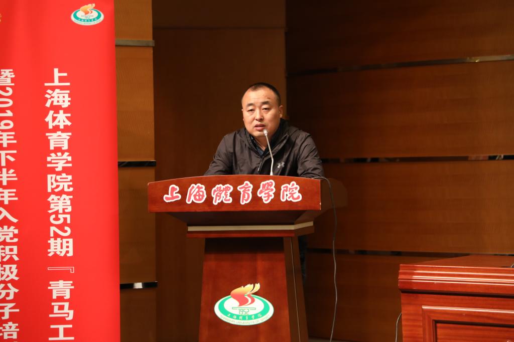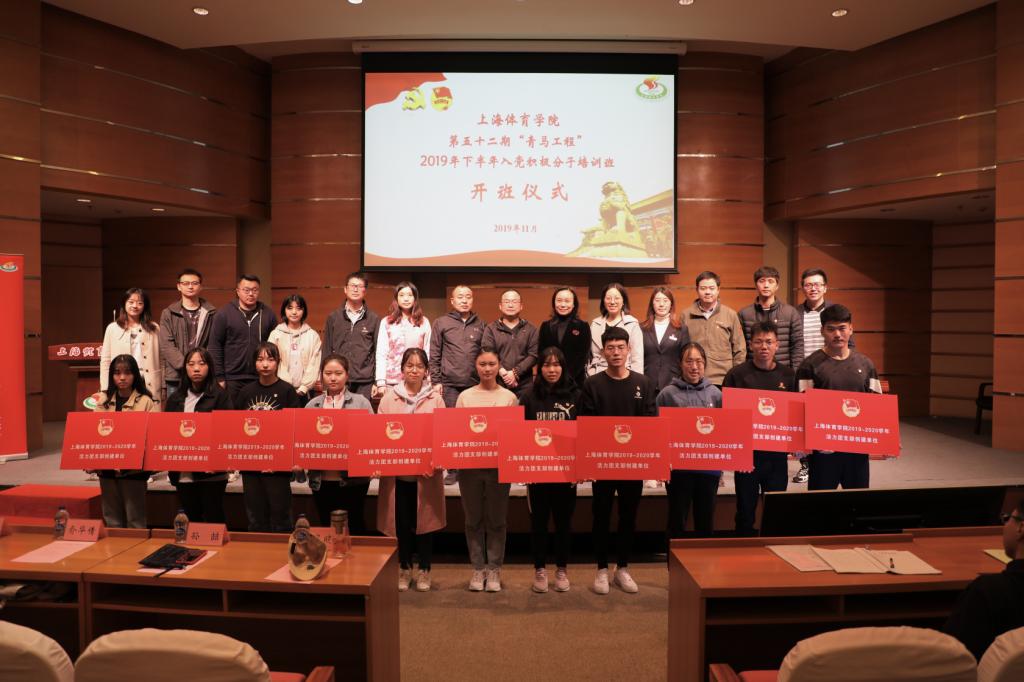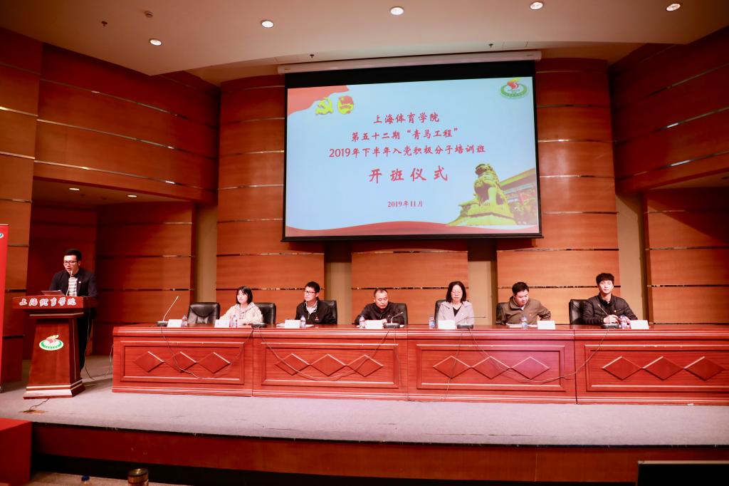 本网讯 11月20日下午,我校第52期“青马工程”暨2019年下半年入党积极分子培训班开班仪式在图文信息楼报告厅举行。上海体育学院附属中学校长马晓东,杨浦区图书馆党支部副书记、副馆长孙喆,上海体育学院党委组织部部长王继红,学(研)工部、武装部部长梅朵,校团委书记陈鸿、党委组织部副部长蒋啸天,上体附中团委书记俞华倩及杨浦区图书馆实践基地负责人黄怡,本次培训班班主任王乐、丁浩,分团委书记代表以及214位学员共同参与了开班仪式。仪式由团委副书记杜恺主持。