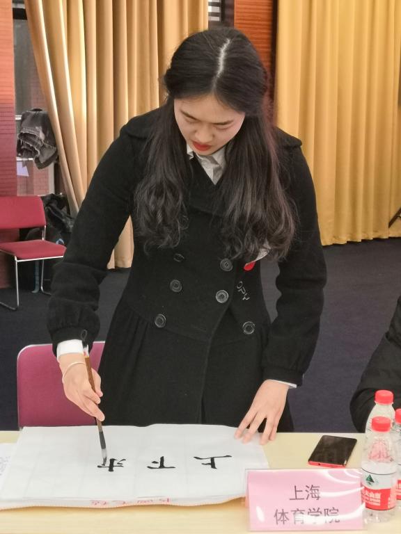 接下来的三个环节,队员根据各自的优势特点,吴宗仁参加五禽戏的体验活动,金洁参与“上下求索”的书法展示和“曾几何时,我面对着巨大的学习压力”即兴演讲。从小就习字、来自上海的金洁现场握笔挥毫的美姿获得李正云评委的赞誉,而她的演讲因是自己真实求学经历的分享感动了现场的评委和师生,赢得一片掌声。