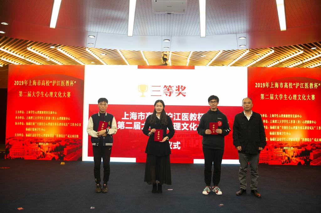 本网讯 11月20日下午,来自复旦大学、同济大学、上海财经大学、上海外国语大学等11所高校以及杨浦区精神卫生中心的12支代表队伍,齐聚在上海理工大学,这里正在举行上海市高校第二届“沪江医教杯”心理文化大赛。我校通过校内初赛选拔出来的选手,来自休闲学院的吴宗仁和体育教学训练学院的金洁,分工明确、配合默契、沉着迎战,最终荣获三等奖。我校心理健康教育与咨询中心荣获“优秀组织奖”。