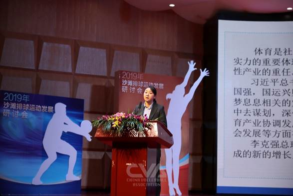国家体育总局排球运动管理中心主任李全强、中国国际电视总公司总裁助理、中视体育娱乐有限公司董事长、总经理赵建军、海南省旅游和文化广电体育厅副厅长徐翔鸿、海口经济学院副校长彭京宜、上海体育学院休闲学院院长王红英纷纷进行了主旨演讲,共同探讨中国沙滩排球运动的发展、中国沙滩排球后备人才培养、国家沙滩排球队备战东京奥运会以及沙滩排球产业发展等相关话题。