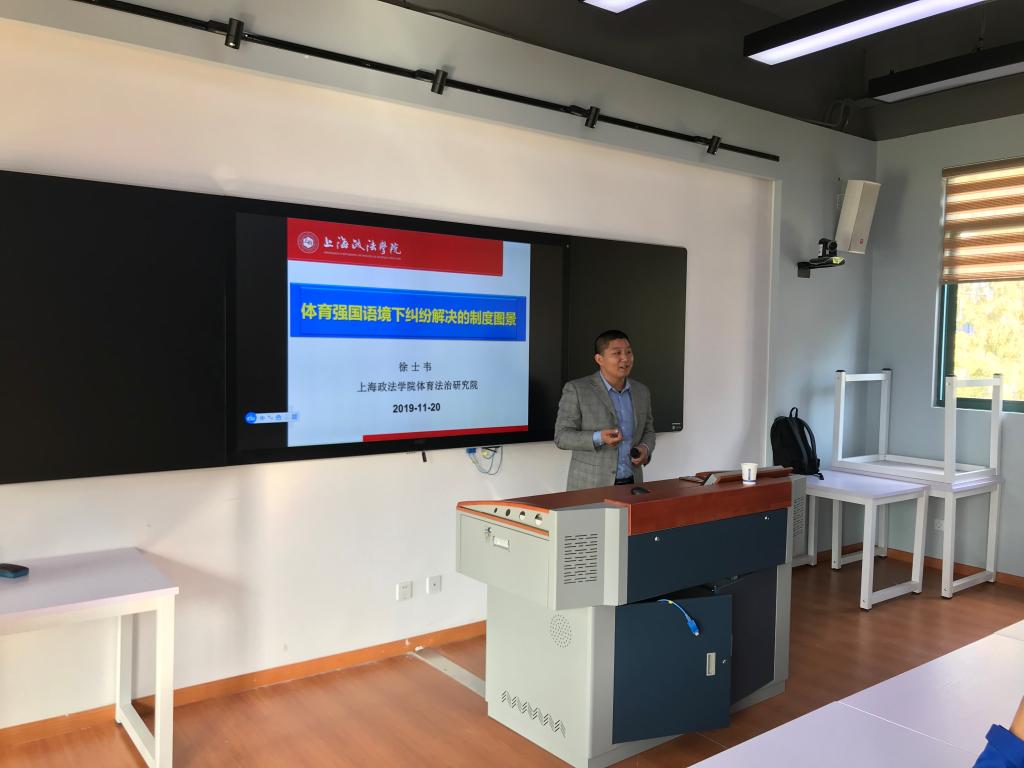 休闲学院邀请上海政法学院体育部(体育法治研究院)书记(副院长)徐士韦,在建设体育强国的时代背景下,向广大师生描绘了解决纠纷的法律制度图景,充分展示了我国国家制度和法律制度的显著优越性和强大生命力。