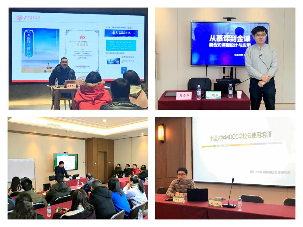 12月11日,山东大学王震亚老师主讲《从慕课到金课:混合式课程教学实践》,王老师从信息化背景下教与学的关系出发,讲授了在线开放课程的建设、运行和申报内容及技术要点,并分享了自己2门国家级精品课程的,选课人次高达100多万的建设、运行、申报“三步曲”混合式教学实践经验。