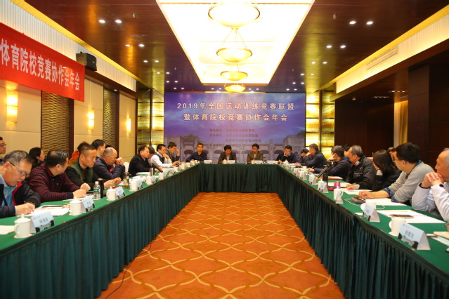 本网讯 12月13日至15日,由国家体育总局科教司指导,全国运动训练竞赛联盟和全国体育院校竞赛协作会主办的2019年全国运动训练竞赛联盟暨体育院校竞赛协作年会在南京体育学院召开。来自全国体育院校和相关体育赛事公司共24家单位代表参加了会议。会议由全国运动训练竞赛联盟执行主席张飙主持,国家体育总局科教司司长李业武,二级调研员罗建彬等相关领导出席。我校训练竞赛处处长邵斌、训练竞赛处竞赛主管邵寅强参加本次会议。
