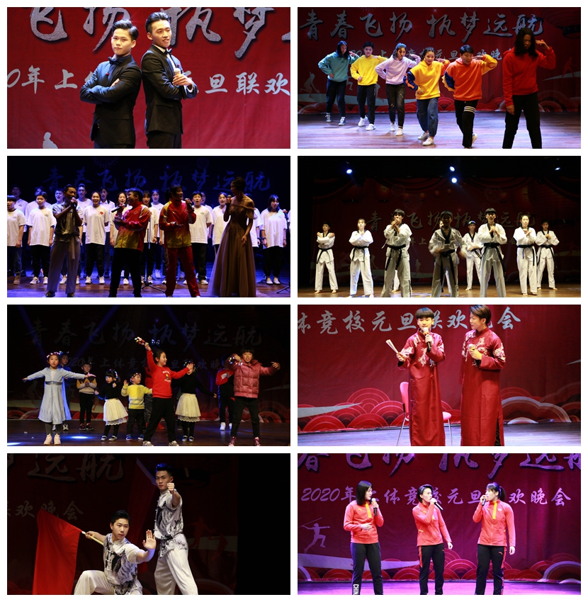 本网讯 12月28日晚,“青春飞扬、执梦远航”竞校2020年元旦迎新晚会于活动中心小剧场成功举办。上海体育学院副院长施之皓、组织部部长王继红、学工部、研工部、武装部部长梅朵、团委书记陈鸿、体训学院分党委副书记、副院长曹智超、竞校党总支书记王青、竞校校长韦蓓、竞校党总支副书记、副校长罗海涛以及竞校教职员工出席晚会现场。