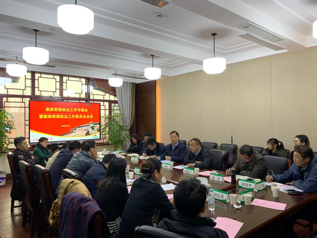 本网讯 为深入贯彻落实习近平总书记关于教育的重要论述和全国教育大会精神,全面落实《中共中央国务院关于全面深化新时代教师队伍建设改革的意见》和《关于加强和改进新时代师德师风建设的意见》,全面加强和推进我校教师思想政治工作和师德师风建设。1月3日下午,我校在绿瓦大楼第三会议室举行教师思想政治工作专题会暨教师思想政治工作委员会会议,校党委副书记、教师思想政治工作委员会常务副主任潘勤出席会议,学校教师思想政治工作委员会全体委员参加会议。党委教师工作部部长匡淑平主持会议。