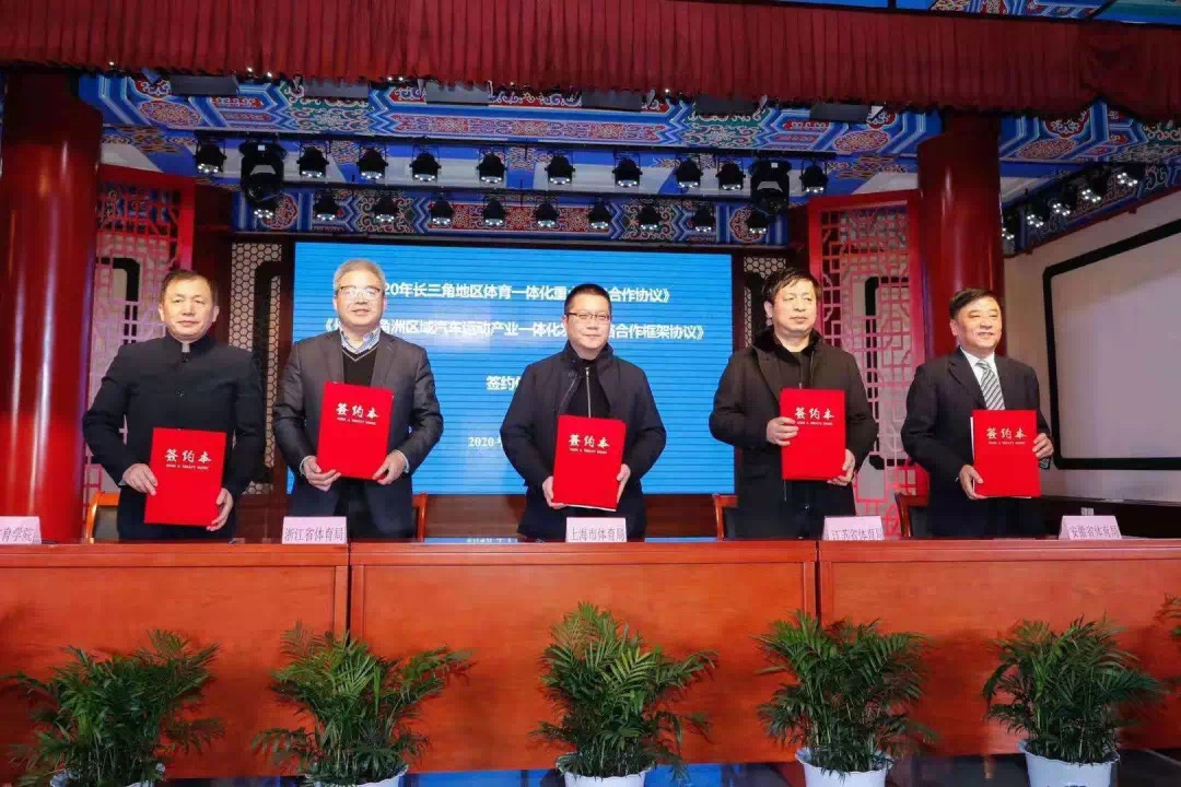 会上,浙江省体育局副局长李华、我校黄海燕教授、上海市体育局副局长许琦先后汇报了《2019年长三角地区体育产业协作工作报告》、《长三角体育产业发展蓝皮书》、《长三角地区体育一体化高质量发展的若干意见》等基本情况。三省一市一院分管体育产业主管领导共同签署了《2020年长三角地区体育一体化重点项目合作协议》和《长江三角洲汽车运动产业一体化发展合作框架协议》。
