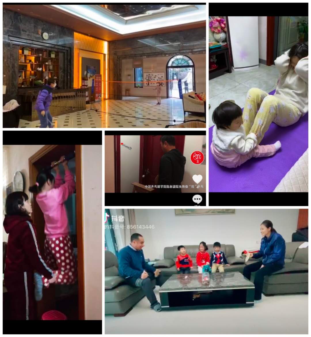 疫情期间,中乒院师生和少年班队员们在运动训练上毫不松懈,主动开展居家健身训练,保证体能储备和技术水平。在学院教学部、训练部统筹安排下,自1月底以来各位老师和教练员化身“线上达人”,制定安全、科学的居家训练计划,通过抖音、微信视频、打卡小程序等多种在线途径,积极指导和督促少年班队员在家里完成训练任务。