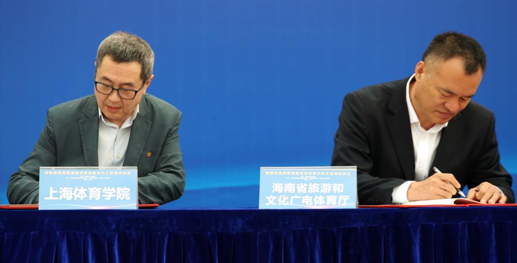 上海体育学院副院长施之皓与海南省旅文厅副厅长徐翔鸿代表双方签订了协议。