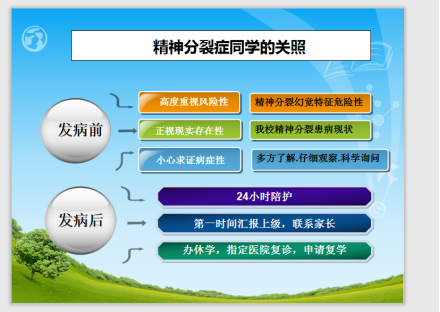 身为心理辅导员,要密切关注学生心理动态,做好预警防范工作,在与学生谈话前应具备一定的理论知识,沟通时要掌握与心理疾病学生的沟通技巧,表现出同理心,在自己拿不准的情况下可向专业人士求助,最后一定要将谈话情况及时向领导汇报。
