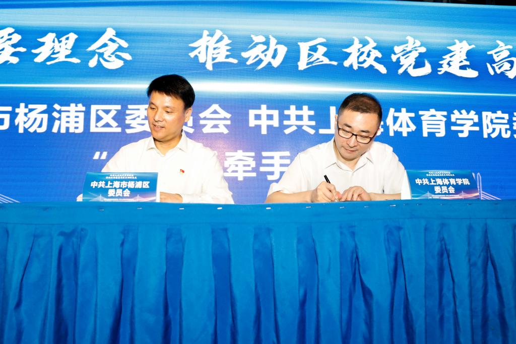 仪式上,杨浦区委书记谢坚钢和上海体育学院党委书记李崟进行了党建联建签约。