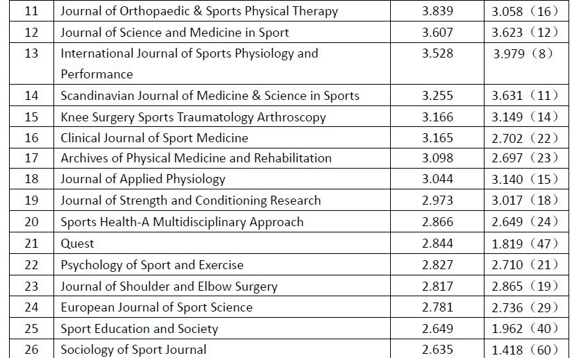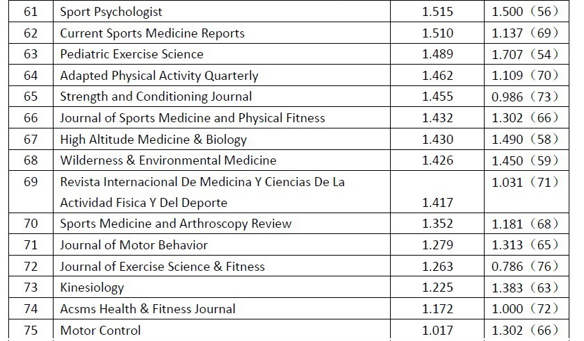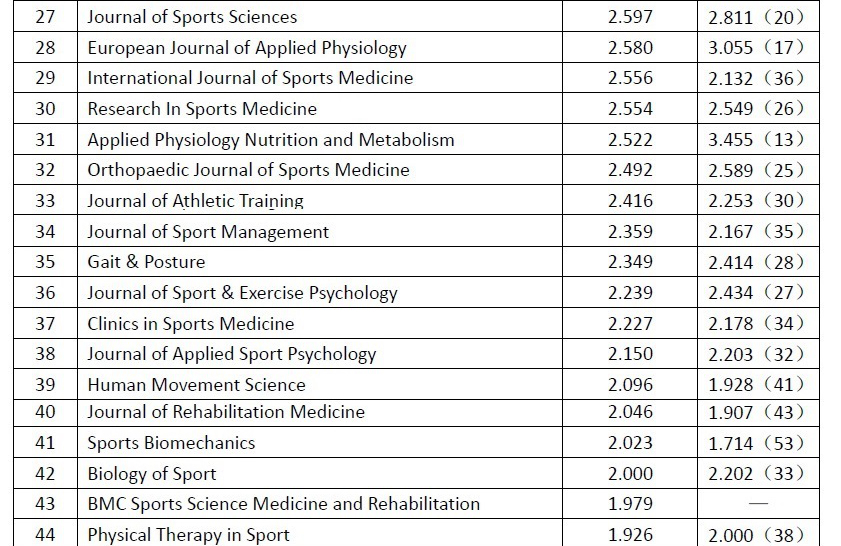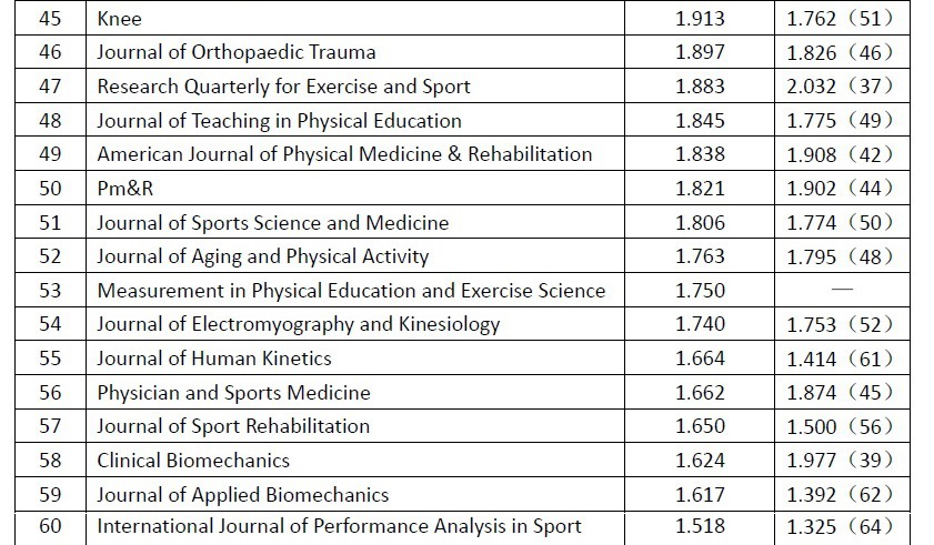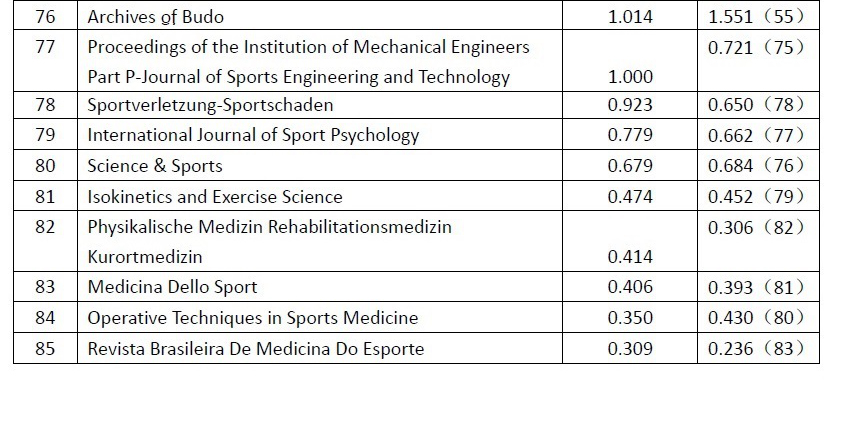 SCI收录体育类期刊影响因子(IF)排名(85种,2019 JCR)