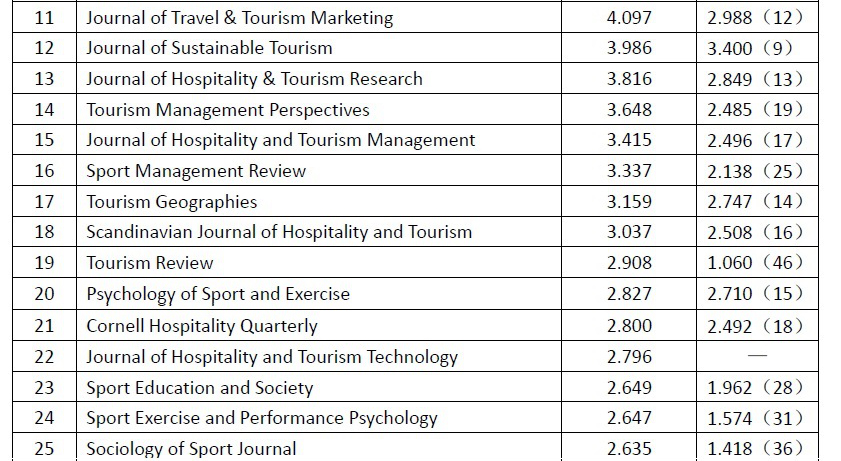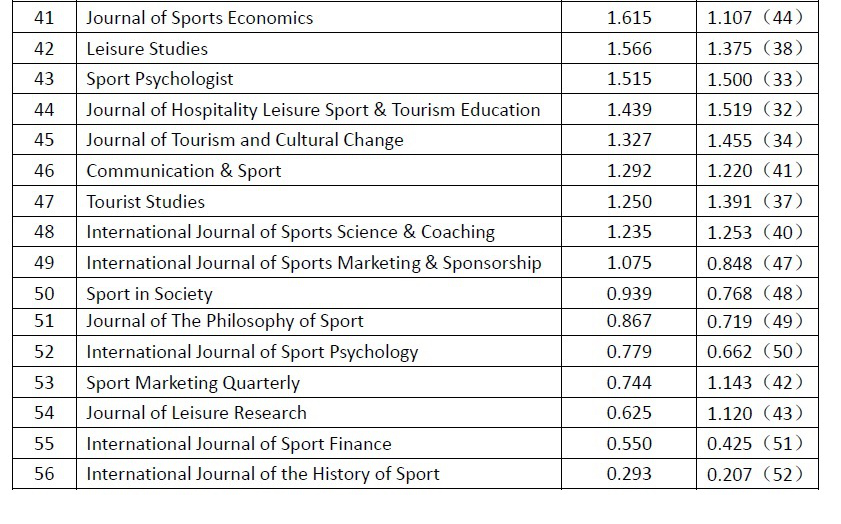 SSCI收录的运动、休闲、旅游类期刊影响因子(IF)排名(56种,2019 JCR)