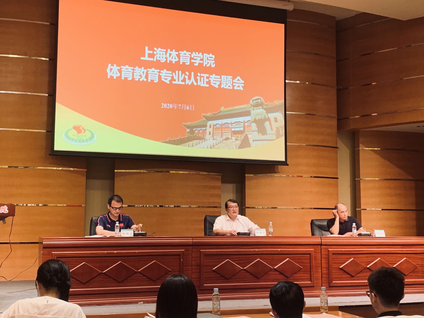 本网讯 7月6日下午,上海体育学院体育教育专业认证专题工作会议在图文信息楼报告厅召开。上海体育学院院长陈佩杰、教务处教务处负责同志、体训学院认证工作组全体成员、各教学团队负责人及大纲执笔人、相关二级学院教学副院长,学生工作部、创新创业学院领导及体育教育专业课程教学大纲执笔教师参与了会议。会议由教务处处长邵斌主持。会议就开展体育教育专业认证工作做出了重要部署。