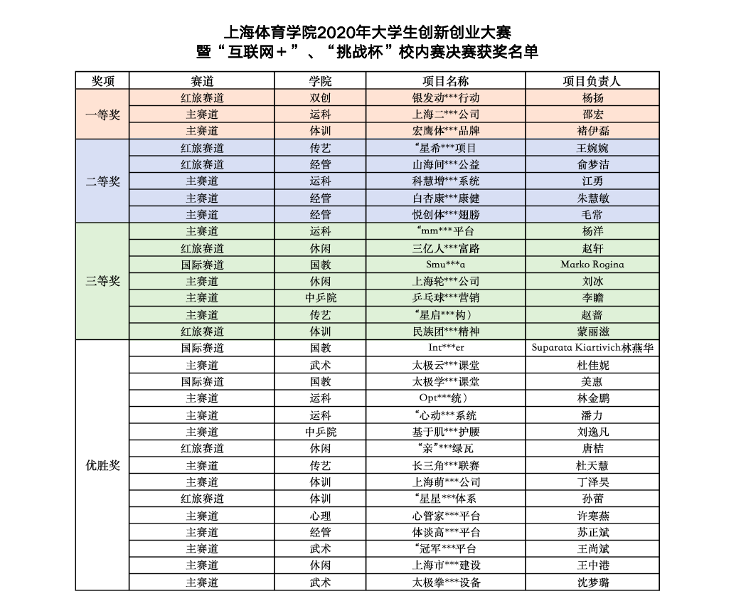 本网讯 为全面落实习近平总书记给中国“互联网+”大学生创新创业大赛“青年红色筑梦之旅”大学生的重要回信精神,深入推进大众创业万众创新,加快培养创新创业人才,促进创新驱动创业、创业引领就业,并选送优秀项目参加第六届中国国际“互联网+”大学生创新创业大赛与第十二届“挑战杯”大学生创业计划竞赛,我校2020年大学生创新创业大赛暨“互联网+”、“挑战杯”校内赛决赛于7月10日在线上平台成功举办。本次决赛答辩会邀请了校外6位专家对入围决赛的30件作品进行评审。上海体育学院副院长、创新创业学院院长王兴放,创新创业学院执行院长吴雪萍,副院长陈伟、王少白,各二级学院领导、项目指导老师等参加活动。