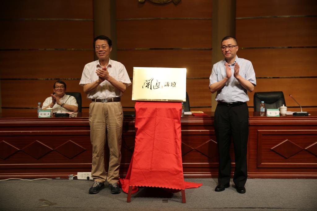 马克思主义学院设立的“闻道讲坛”在报告会上揭牌,校党委书记、马克思主义学院院长李崟和李琪教授共同为讲坛揭牌。李琪教授的报告同时也是马克思主义学院“闻道讲坛”首场报告。