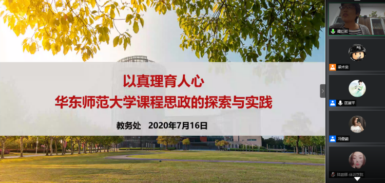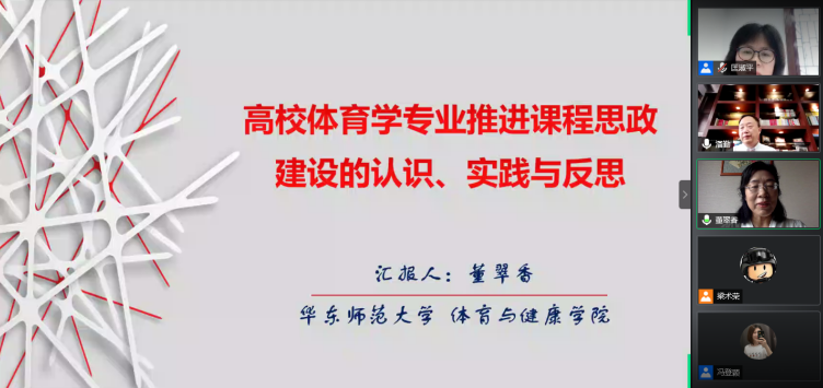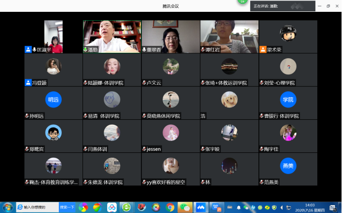 本网讯 7月16日下午,我校党委教师工作部、教务处、教师教学发展中心三部门联合举办“课程思政”专题培训暨“崇德修身”教师沙龙,活动采用线上学习形式进行。华东师范大学教务处副处长谭红岩、体育与健康学院体育教育系主任董翠香教授应邀作辅导报告。校党委副书记潘勤出席会议并主持。党委教师工作部部长、机关党委书记匡淑平,教务处副处长、教师教学发展中心主任卢文云,中国乒乓球学院、体育教育训练学院、休闲学院、武术学院、心理学院教师以及其他二级学院教师代表100余人参加。