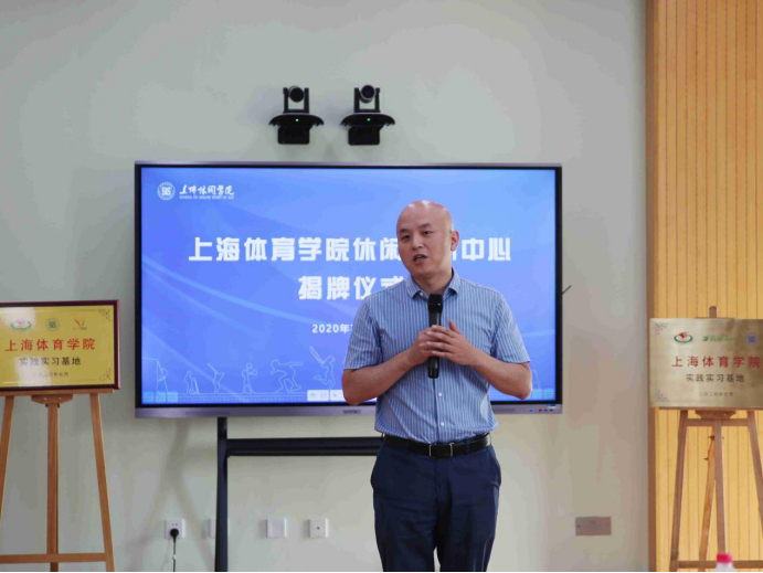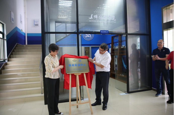 仪式伊始,上海体育学院党委副书记、院长陈佩杰与党委副书记、纪委书记詹萌为休闲实训中心揭牌,并与全体人员参观、体验了实训中心。