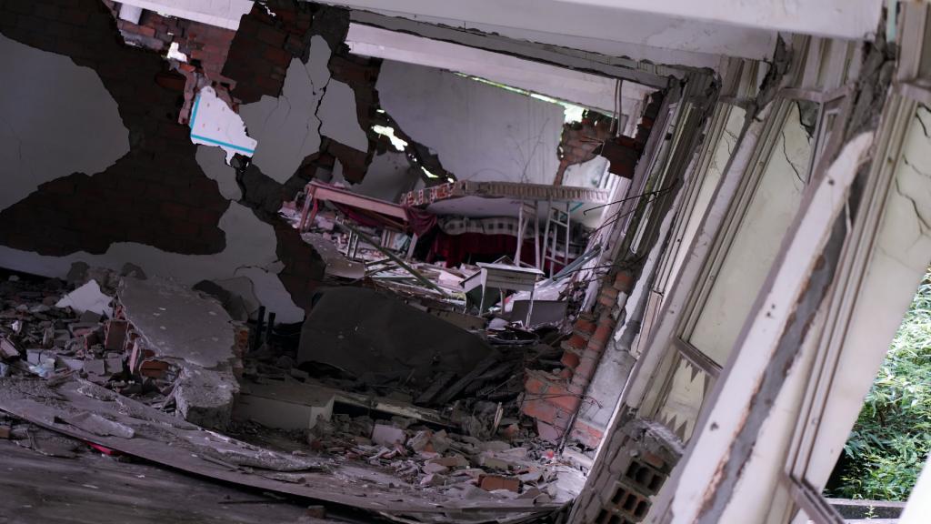 本网讯 7月20日,体训学院“体育中的红色基因”青年团队“民族大团结组合”赴5·12汶川特大地震震中——四川省阿坝藏族羌族自治州汶川县映秀镇,在当年大地震幸存者的讲述下在漩口中学旧址进行了爱国主义教育活动。