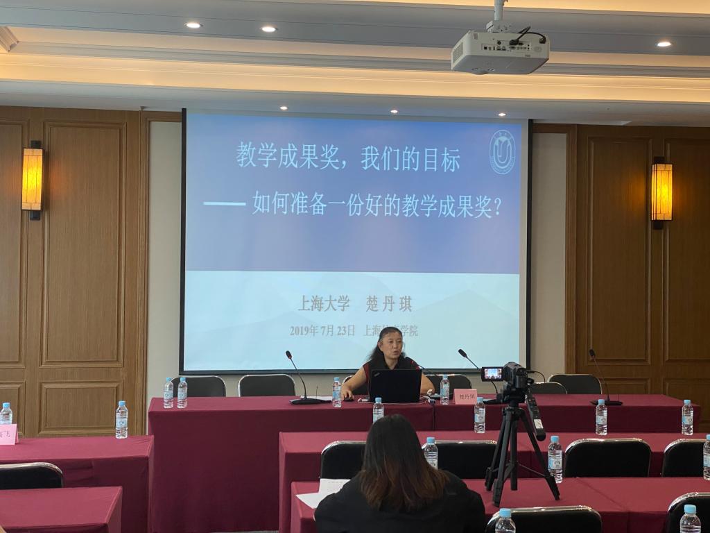 上海大学楚丹琪老师从问题导向、重点关注、工作方法、材料准备四个方面对教学奖的培育与申报进行了清晰而全面的讲解。她首先以上海大学申报与获评上海市教学成果特等奖的历程为例,启发我们教师要围绕“教学”做事,为提高人才培养质量做出成绩,随后楚老师对教学成果奖的培育与申报进行重点阐述,尤其对如何填写成果申报书、撰写申报成果报告及成果视频脚本等材料重点进行解读,对申报表格的填写内容细致的介绍和指导。