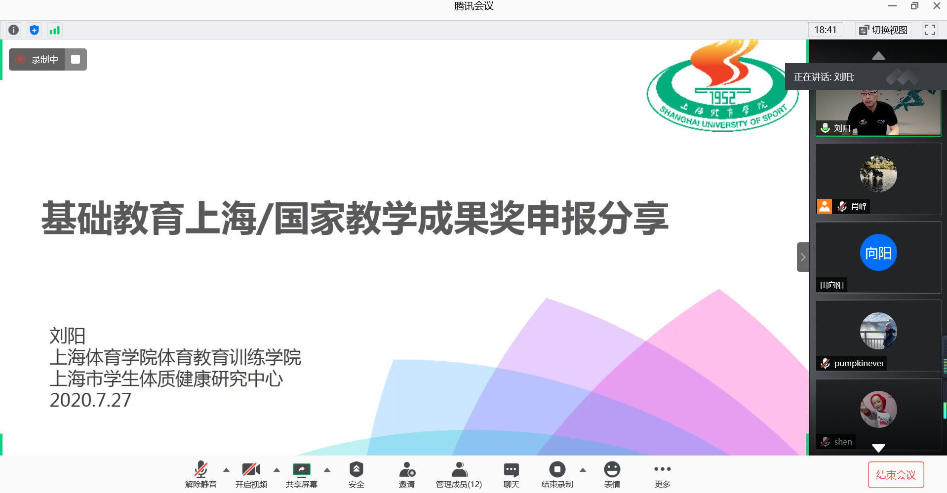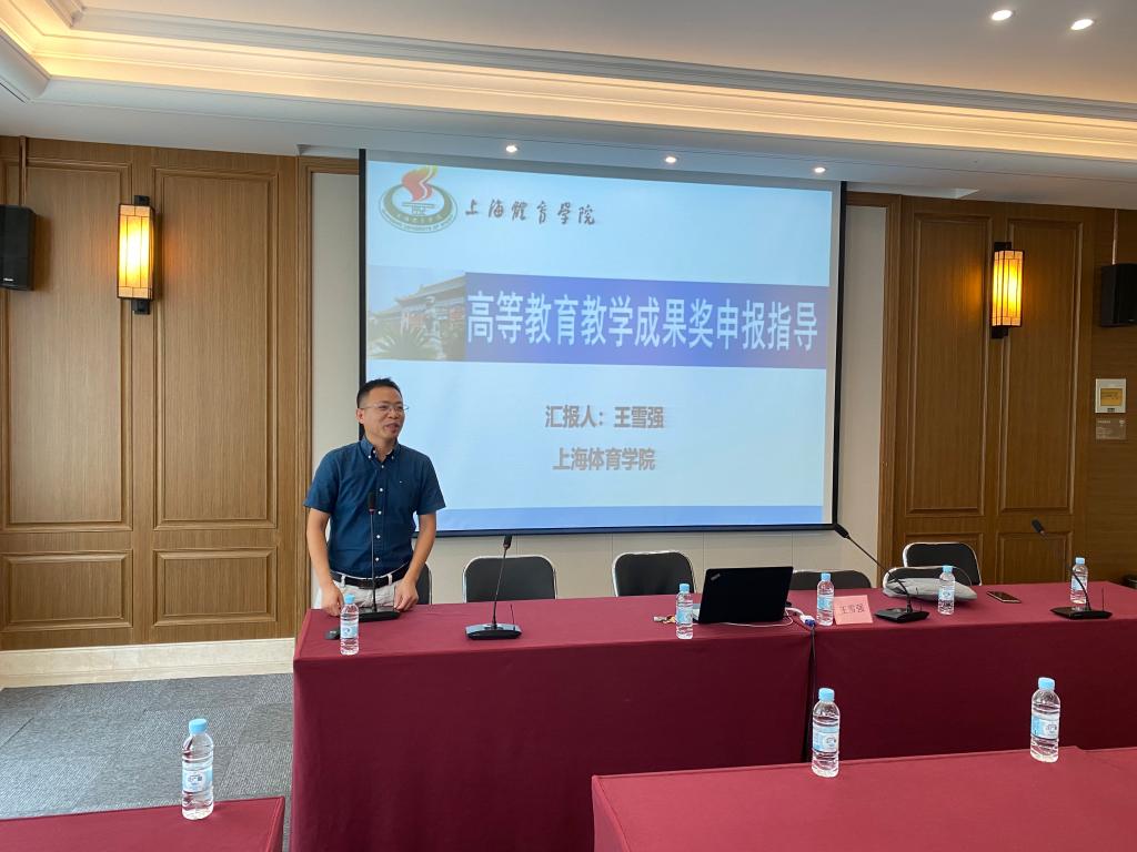 本网讯 近期,我校启动2020年上海体育学院上海市、校级教学成果奖申报工作。为了进一步做好我校优秀教学成果的凝练、总结和教学成果奖申报工作,提升教学成果奖的申报质量,教务处、教师教学发展中心于7月24日、27日下午在体育交流中心、腾讯会议平台举行”高校教学成果培养与申报总结”专题培训会,各二级学院教学副院长、教学成果奖申报工作负责人及优秀教学成果完成人等,30余人参加本次活动,培训会由教务处副处长沈高飞主持。