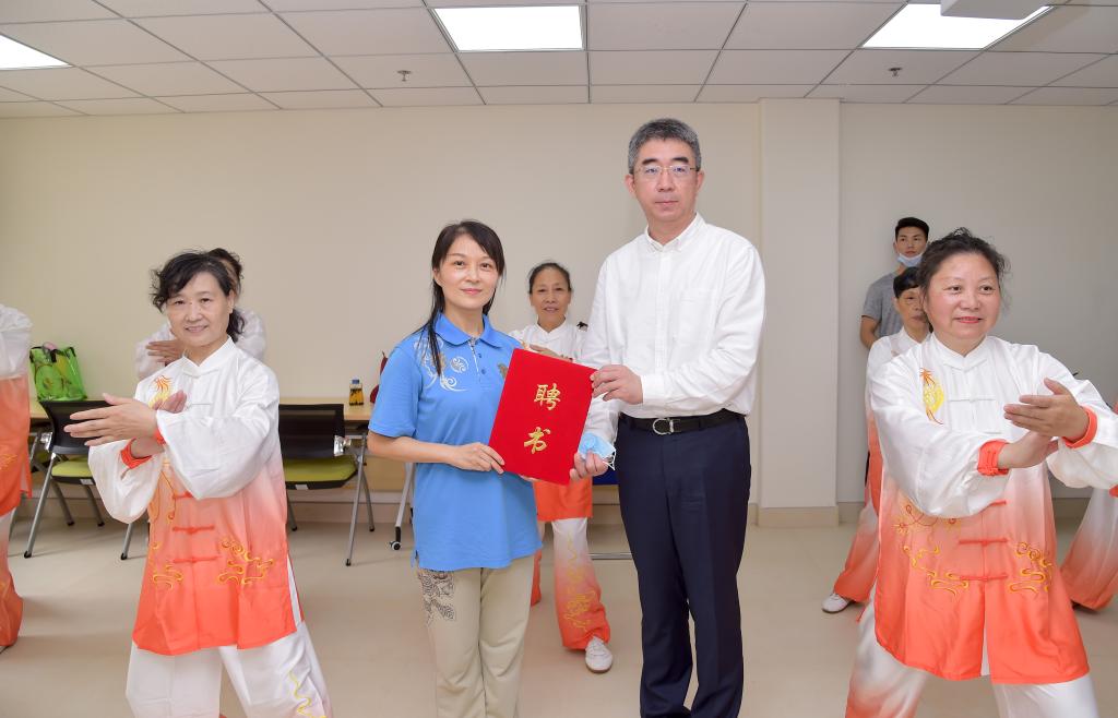 专题汇报后与会领导共同按下启动键,点亮长白街道“体医融合朋友圈”,杨浦区副区长王浩向“社区康复师团队”代表发放了聘任书,最后上海体育学院党委副书记杨玲与杨浦区组织部长程绣明共同为项目揭牌将整场活动推向高潮。签约仪式后,与会领导系统考察了长白新村街道社区康复师工作站,提出进一步优化提升的方向建议,并勉励各个团队踏实肯干,切实服务“人民城市”建设。