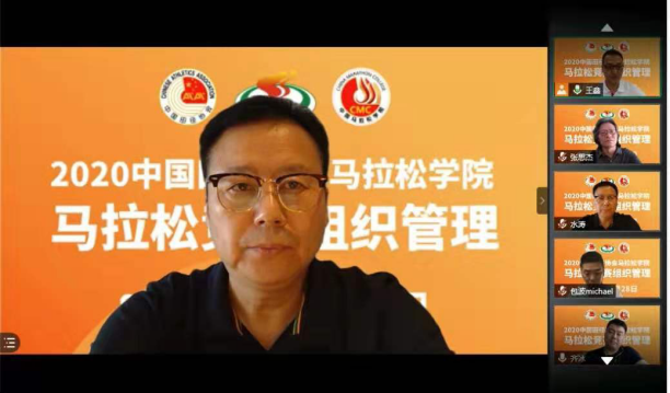 8月26日上午,2020年中国田径协会马拉松学院第一期“马拉松竞赛组织管理”线上培训班正式开始,中国田径协会副秘书长、社会活动部主任水涛,上海体育学院体育教育训练学院院长高炳宏,中国田径协会社会活动部副主任赵朴,北京中迹体育管理有限公司董事长、中国马拉松资深运营专家张思杰,特步(中国)跑步发展中心高级总监齐冰,武汉汉马体育管理有限公司总经理包波等领导和嘉宾出席了本次线上培训开班典礼。