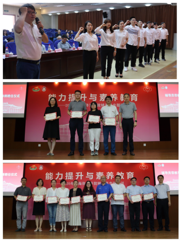 为进一步加强我校辅导员队伍专业化、职业化建设,充分发挥资深辅导员“传帮带”作用,帮助新进辅导员快速适应身份角色、明确岗位职责,扎实做好现阶段疫情防控常态化下的大学生思政教育工作,开班典礼上隆重举行了新进辅导员宣誓仪式和辅导员带教导师聘任仪式。