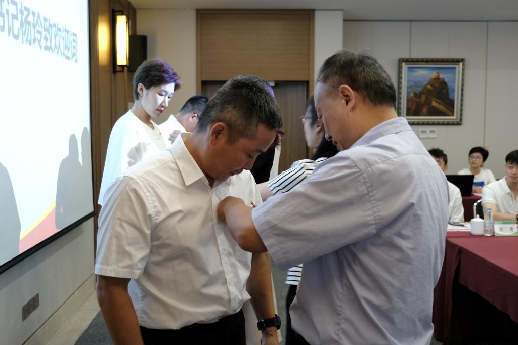 为更好勉励新教师,帮助新教师快速适应身份角色、明确岗位职责,欢迎会上还举行了校徽佩戴和入职宣誓仪式,全体新进教师在党委副书记潘勤带领下,郑重宣誓。