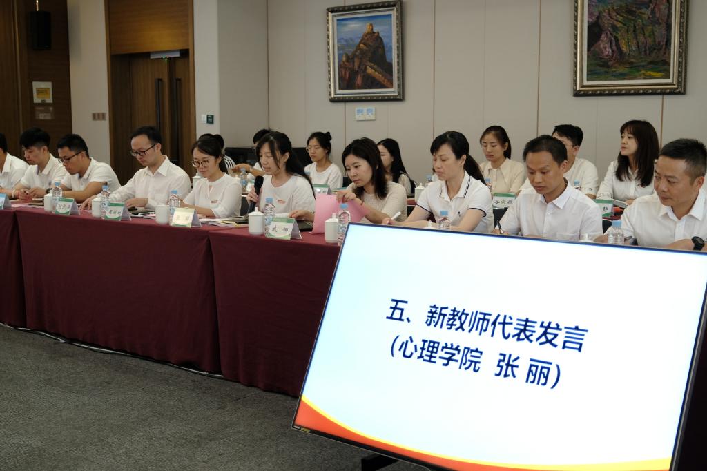 心理学院张丽老师作为新教师代表发言。她在发言中表示成为一名教师是新的起点,未来有了新的责任和使命。她提到,未来一定会加强自己的职业道德修养,学为人师,行为世范,不忘教育初心,牢记育人使命,秉持教师职业操守,锤炼提升职业素养,满腔热情地投入教书育人的神圣实践,为上体的发展贡献自己的力量。