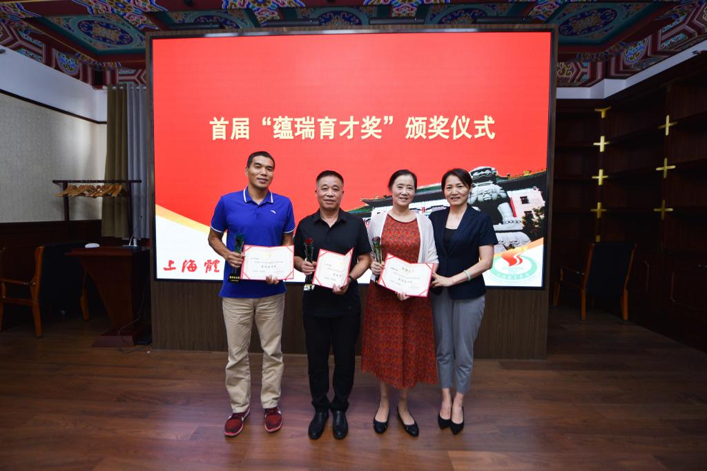 会上,党委副书记杨玲给荣获上海体育学院“首届蕴瑞育才奖”的3位老师吴瑛、潘珊珊、徐辉颁发奖杯和荣誉证书。