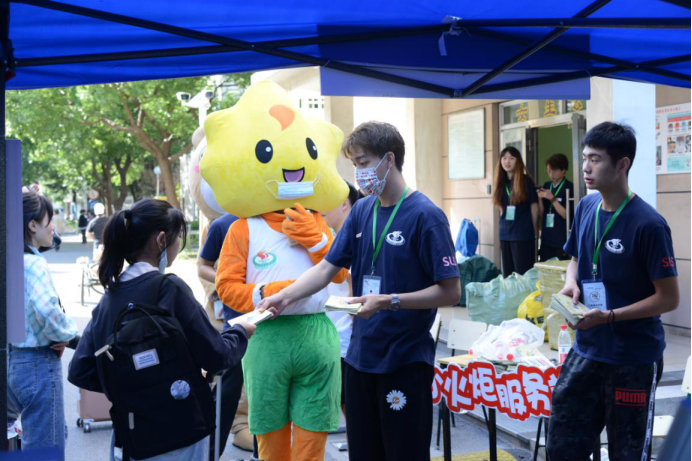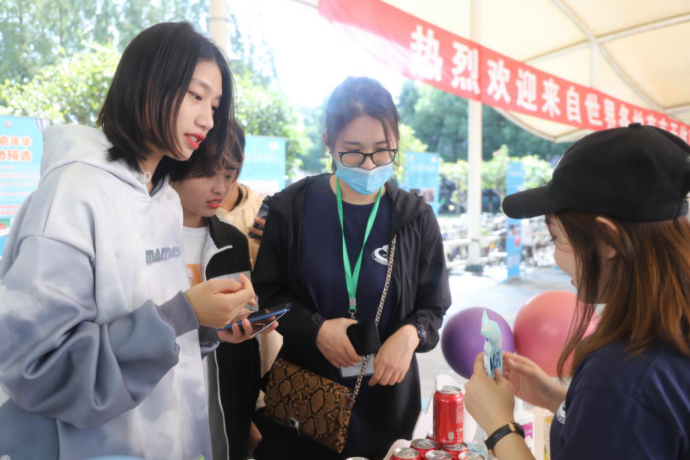 校学生会为新生准备的各种特色活动成了校园一道美丽的风景线:“小火炬服务站”的志愿者耐心解答新生们的疑问,并在大草坪开展新生定向打卡互动游戏,新生们在开学第一天便获得了帆布袋、Logo罐装饮料、新生微宝典等上体牌文创产品。
