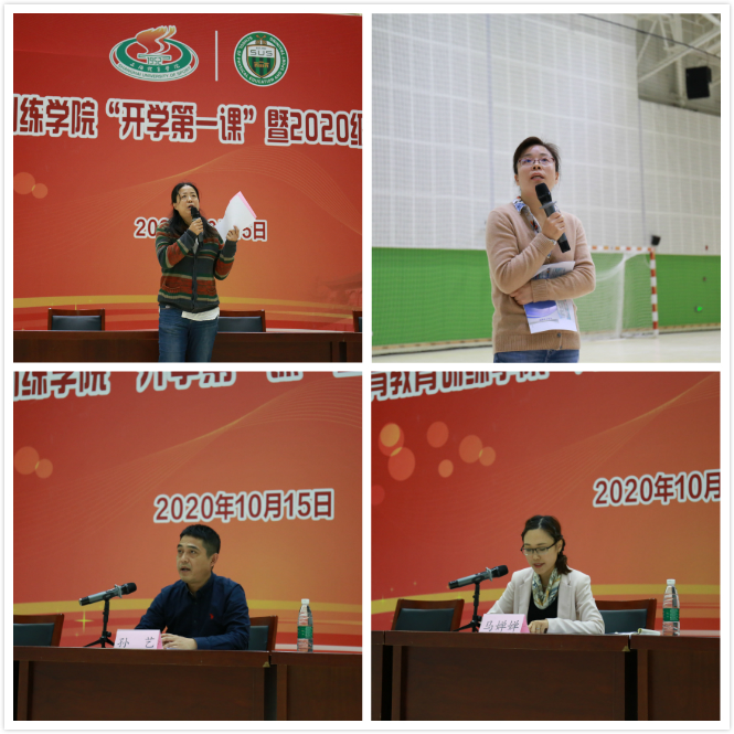 本网讯 10月15日上午,体育教育训练学院“开学第一课”暨2020级新生见面会在综合馆举行。体育教育训练学院党委书记徐烈,党委副书记、院长高炳宏,党委副书记、副院长曹智超,副院长蔡玉军出席会议,后勤处、保卫处等相关部门老师、研究生辅导员、教学秘书和全体2020级硕博研究生参加会议。会议由党委副书记、副院长曹智超主持。