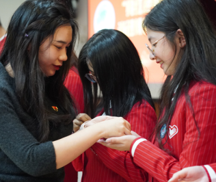 接着,新一届的小叶子们右手举拳,郑重宣誓,他们神情庄重,声音铿锵。铮铮的誓言表达了他们对进博会精神的传承、对进博先锋的表率,更承载着全体绿瓦学子的期待和重托。