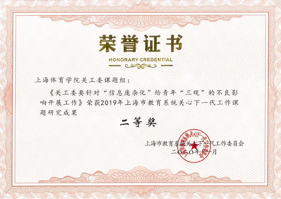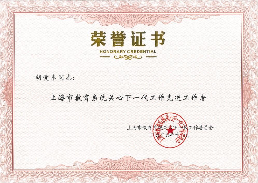 作为25周年庆祝活动的重要内容,大会对教育系统关工委优秀组织、个人、品牌项目、课题成果等进行了表彰。我校退休老干部胡爱本同志荣获“上海市教育系统关心下一代工作先进工作者”称号,校关工委“大学生人生导航导师团”项目荣获“上海市教育系统关心下一代工作优秀品牌项目”荣誉称号,课题《关工委要针对“信息庞杂化”给青年“三观”的不良影响开展工作》获评“2019年上海市教育系统关心下一代工作课题研究二等奖”。