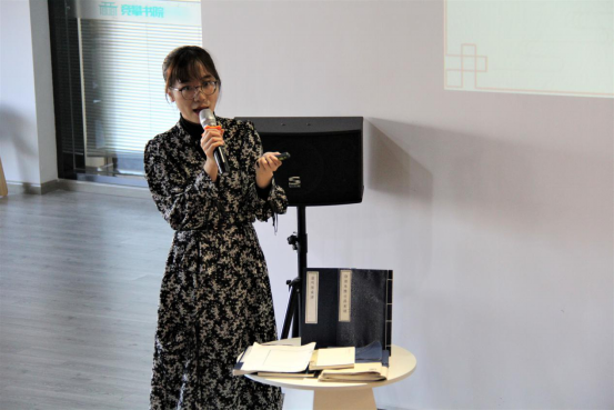 本次活动由杨浦图书馆王泽谦老师主持,复旦大学保护研究院的古籍修复师王美玉老师主讲,并由其学生团队共同辅助讲授。首先王老师给前来参与体验活动的同学进行了书籍装帧历史的讲解,向同学们详细讲解了谱名、谱序、世系、风俗礼仪等内容,并展示了陈列在侧的家谱体验区,向大家展示了属于中国传统家族文化的神秘魅力。
