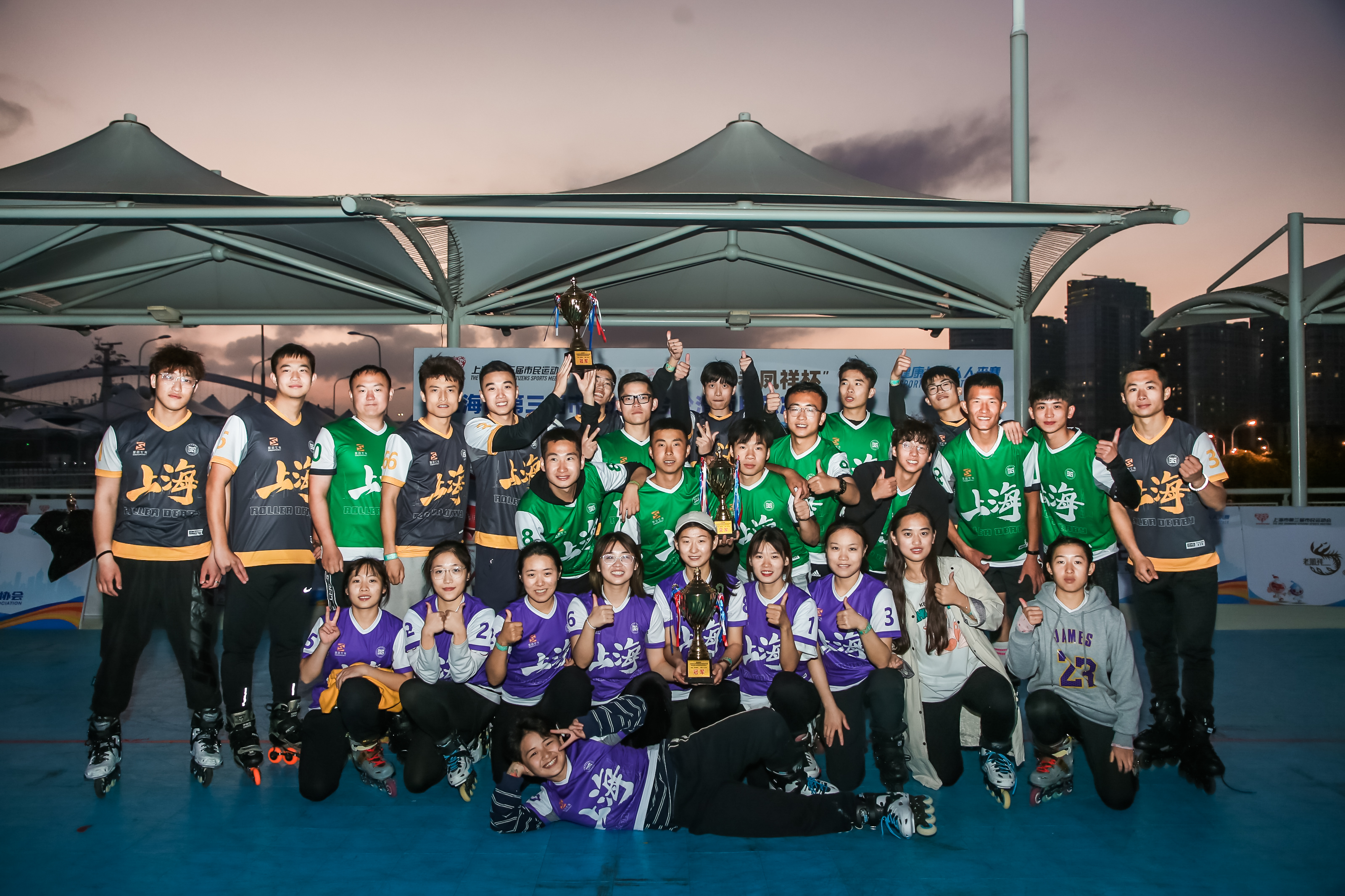 本次比赛体院学生以优异的竞赛成绩展现了我校学生的精神风貌。其中,上体休闲学院圣巴一队获得成年男子组冠军、上体休闲学院圣巴二队获得成年男子组亚军、上体休闲学院圣巴队获得成年女子组冠军。代表我校参赛的运动员,包含了10名休闲学院研究生、6名19级休闲学院体育旅游专业学生、5名19级休闲学院户外运动专项学生等。大部分学生是本学期开学后,通过轮滑和滑板等校本课程的学习、轮滑社团活动才接触轮滑运动。