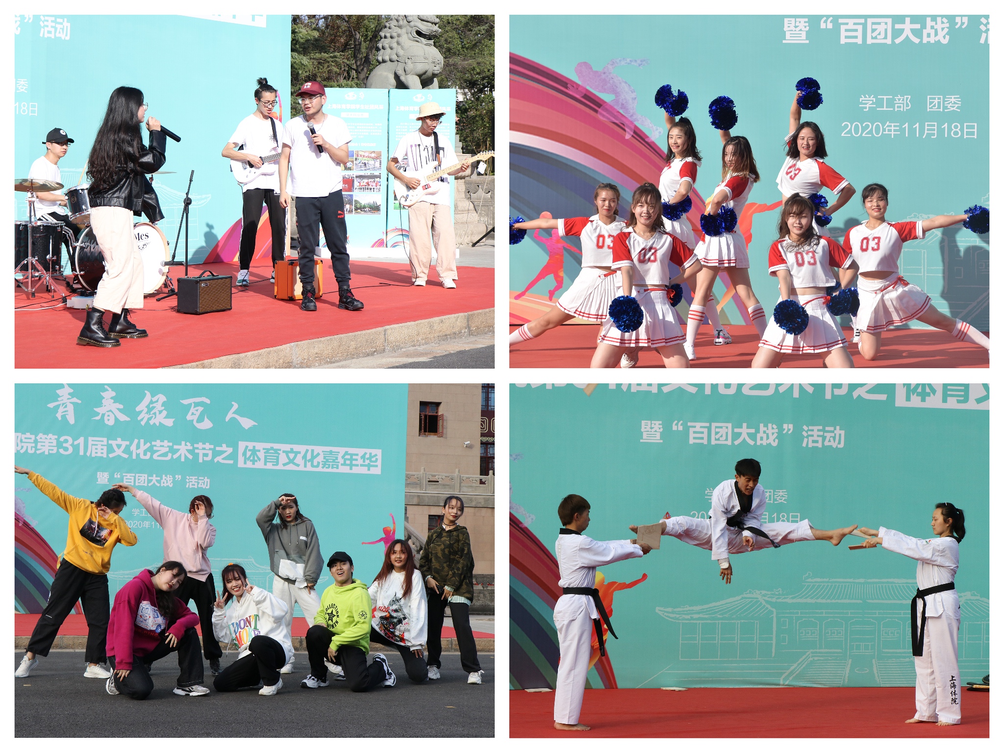 本网讯 为庆祝我校建校68周年,搭建“四史”学习教育的创新延展载体,我校特以校运会日为契机,举行了“青春绿瓦人:上海体育学院第31届文化艺术节之体育文化嘉年华暨百团大战”活动,着力打造品牌活动,推动以校园文化为核心的内涵式发展。11月18日下午,活动在绿瓦大楼前广场拉开帷幕。我校党委副书记、副院长陈晓峰,学(研)工部、团委、各学院党政领导、团委书记等参加活动。