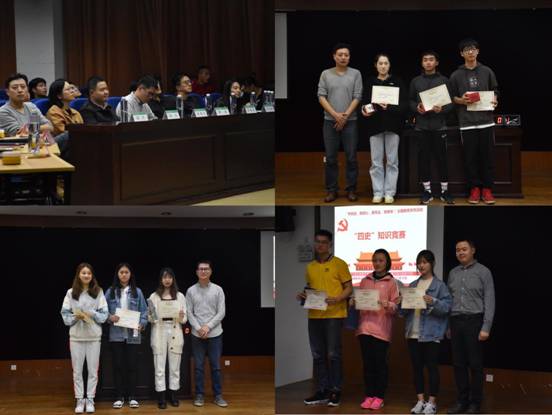 本次比赛规则分为三轮:必答题、抢答题和风险题。每队有100分基础分,依据每轮分值进行加减。题型丰富多样,系统考察了参赛选手们的“四史”教育学习成果。现场各参赛选手结合所学,踊跃抢答,比分瞬时变化,观众积极互动,场内气氛热烈,积极为自己心仪的队伍加油鼓劲。最终由第四队沈杨田田、李刚雷、王靖泽以200分的成绩脱颖而出获得第一名。